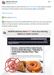 Fact Check: समोसा जलेबी पर सिगरेट की तरह चेतावनी? भ्रामक दावा हुआ वायरल