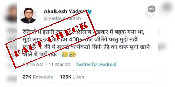फैक्ट चेक: सोशल मीडिया पर सपा नेता अखिलेश यादव के नाम का फर्जी ट्विटर पोस्ट वायरल हुआ
