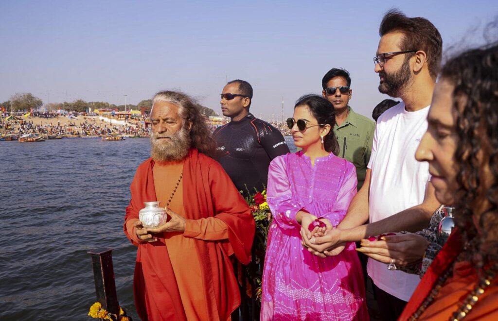 रिलायंस रिटेल वेंचर्स लिमिटेड की कार्यकारी निदेशक ईशा अंबानी ने अपने पति आनंद पीरामल के साथ संगम स्नान किया। इसके अलावा, पूर्व भाजपा नेता नूपुर शर्मा ने भी त्रिवेणी संगम में पवित्र स्नान किया।