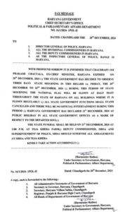 हरियाणा के पूर्व सीएम ओम प्रकाश चौटाला के निधन पर 3 दिन का राजकीय शोक घोषित