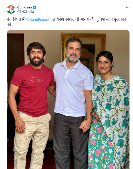 हालांकि, कांग्रेस इस बात पर चुप्पी साधे हुए है कि पूनिया और फोगट को मैदान में उतारा जाएगा है या नहीं, जबकि एआईसीसी महासचिव और हरियाणा प्रभारी दीपक बाबरिया ने मंगलवार को कहा कि गुरुवार तक इस पर स्पष्टता होगी। कांग्रेस ने अपने आधिकारिक एक्स हैंडल पर बजरंग पूनिया और विनेश फोगाट की राहुल गांधी के साथ मुलाकात की तस्वीर पोस्ट की है।