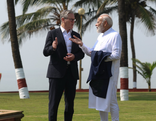 ब्रिटेन के प्रधानमंत्री स्टारमर ने भारत के प्रधानमंत्री नरेंद्र मोदी से शुक्रवार को मुंबई के राजभवन में मुलाकात की। प्रधानमंत्री बनने के बाद स्टारमर का यह पहला भारत दौरा है। दोनों नेताओं के बीच प्रतिनिधिमंडल स्तर की बातचीत भी हुई, जिसमें व्यापार, निवेश, रक्षा, तकनीकी सहयोग और वैश्विक मुद्दों पर विस्तार से चर्चा हुई।