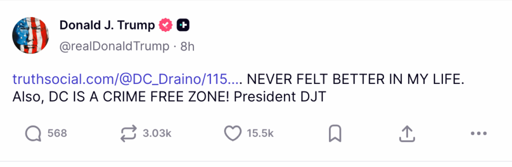यह पोस्ट, तथा एक रूढ़िवादी टिप्पणीकार द्वारा मीडिया के “दोहरे मापदंड” पर किए गए कटाक्ष को पुनः साझा करना, ट्रंप द्वारा अपनी फिटनेस पर बढ़ती चर्चा के बीच अपनी ताकत दिखाने का नवीनतम प्रयास था.