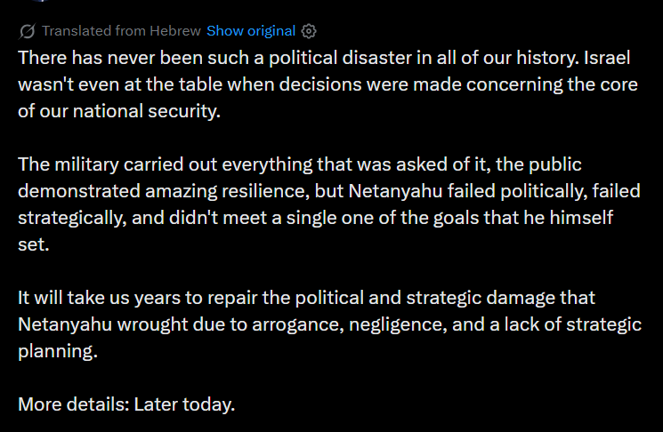 विपक्ष के नेता Yair Lapid ने इस फैसले को “ऐतिहासिक राजनीतिक गलती” बताया। उन्होंने कहा कि इस पूरे फैसले में इज़राइल को शामिल ही नहीं किया गया।