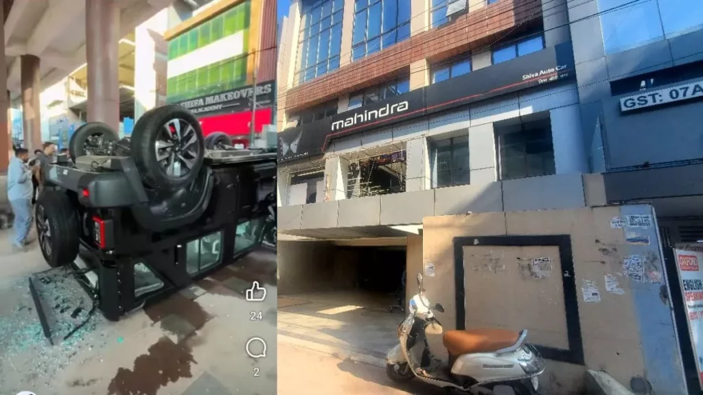 नींबू पर चढ़ाने निकली थार, शोरूम की पहली मंज़िल से लगा दी छलांग
