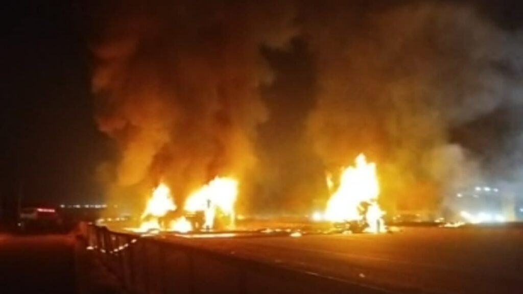 चित्रदुर्ग (कर्नाटक): कर्नाटक के चित्रदुर्ग जिले में राष्ट्रीय राजमार्ग-48 (NH-48) पर गुरुवार को एक भीषण सड़क हादसा हुआ, जिसमें 12 लोगों की जान चली गई और 21 यात्री घायल हो गए. हिरियुर क्षेत्र में हुए इस हादसे में एक प्राइवेट स्लीपर बस (सीबर्ड कोच) लॉरी से टकराने के बाद आग की लपटों में घिर गई… पूरी खबर पढ़ें