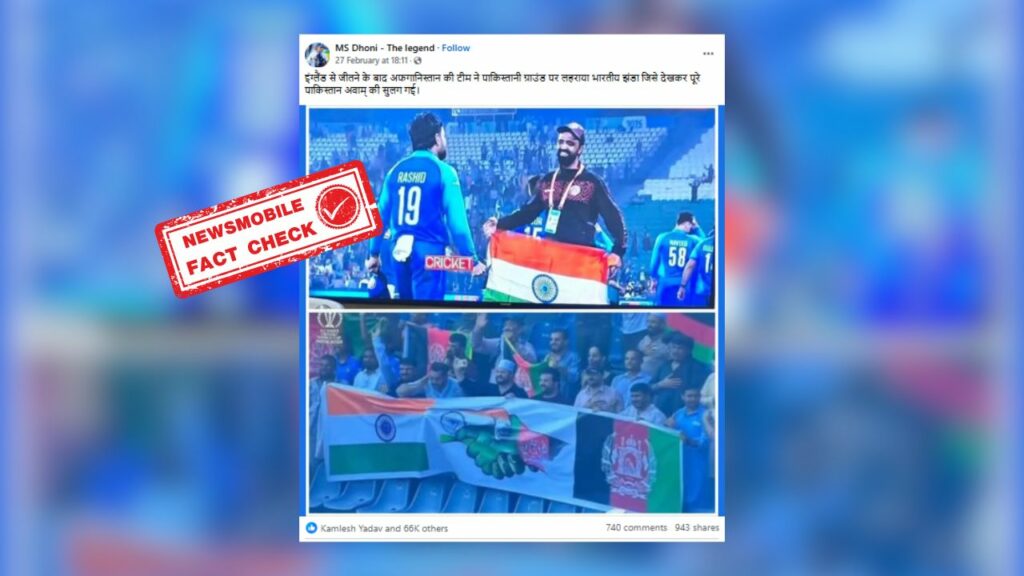 सोशल मीडिया पर एक तस्वीर तेजी से वायरल हो रही है। तस्वीर एक क्रिकेट प्ले ग्राऊंड की है जहां एक व्यत्कि अफगानिस्तान क्रिकेट टीम के सपोर्ट स्टाफ की जर्सी पहने हुए अफगानिस्तान क्रिकेट टीम के स्टार खिलाड़ी रसीद के सामने हाथ में भारतीय झंडा लिए हुए खड़ा दिखाई दे रहा है। इसी तस्वीर को सोशल मीडिया पर शेयर कर दावा किया जा रहा है… पूरी खबर पढ़ें
