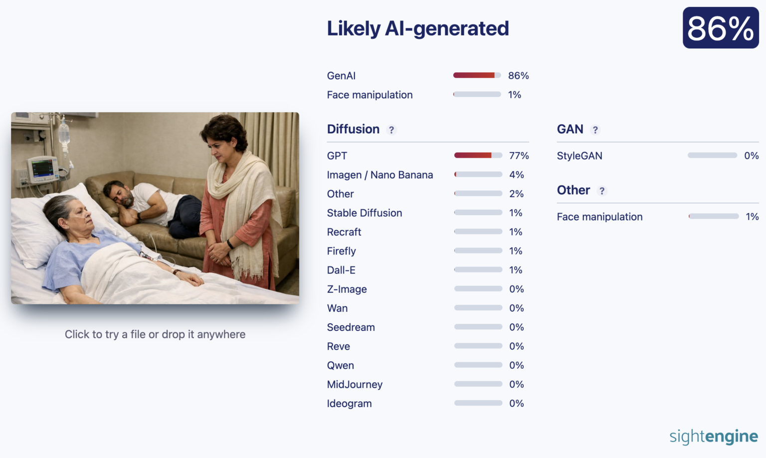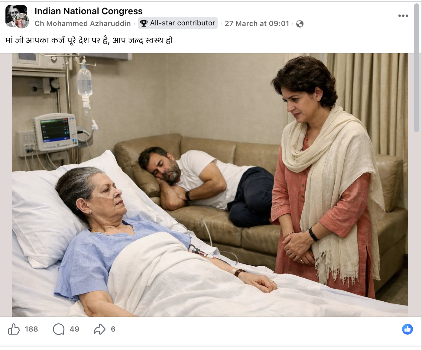 NM VERIFIED: अस्पताल में सोनिया गांधी की वायरल तस्वीर निकली फर्जी, AI से बनाई गई इमेज