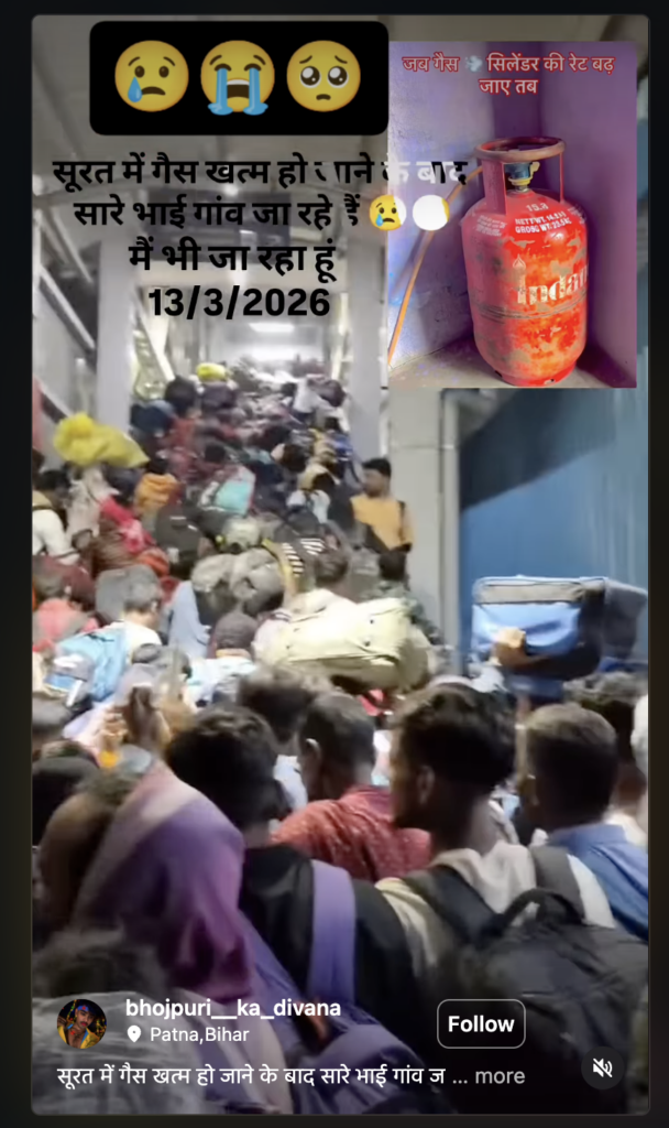 इसके अलावा, सूरत या दिल्ली में गैस सिलेंडर की कमी या लोगों के पलायन की कोई विश्वसनीय खबर भी सामने नहीं आई है।