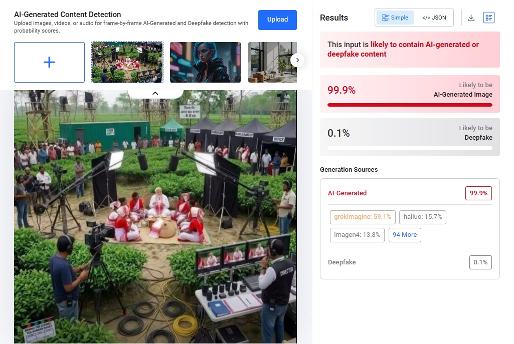 फैक्ट-चेक के बाद साफ है कि प्रधानमंत्री नरेंद्र मोदी के असम दौरे से जुड़ी यह वायरल तस्वीर असली नहीं है, बल्कि फर्जी और AI-जनरेटेड है।