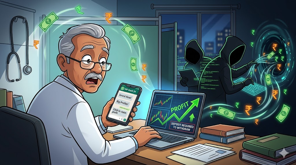 पुलिस के मुताबिक, इस साल जनवरी में डॉक्टर को एक अनजान नंबर से मैसेज मिला, जिसमें कम समय में भारी मुनाफे का दावा किया गया था। दिलचस्पी दिखाने पर उन्हें “VIP Stock 24” नाम के एक व्हाट्सऐप ग्रुप में जोड़ लिया गया, जहां उन्हें आकर्षक निवेश योजनाएं बताई गईं।