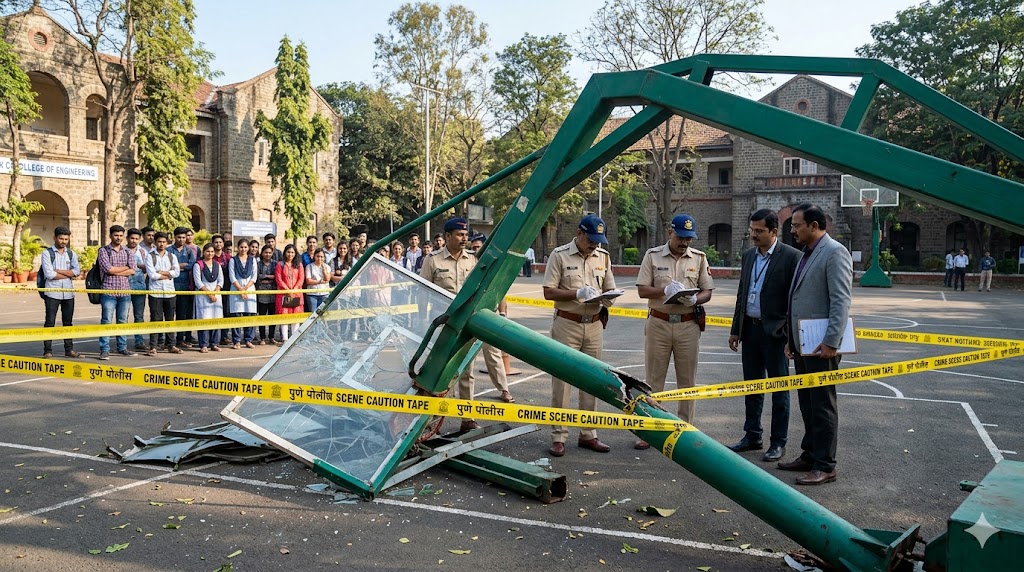 महाराष्ट्र के पुणे से एक दर्दनाक हादसा सामने आया है, जहां एक मरीन इंजीनियरिंग छात्र की बास्केटबॉल पोस्ट गिरने से मौत हो गई। इस घटना ने कैंपस की सुरक्षा व्यवस्था और खेल इंफ्रास्ट्रक्चर की हालत पर गंभीर सवाल खड़े कर दिए हैं।