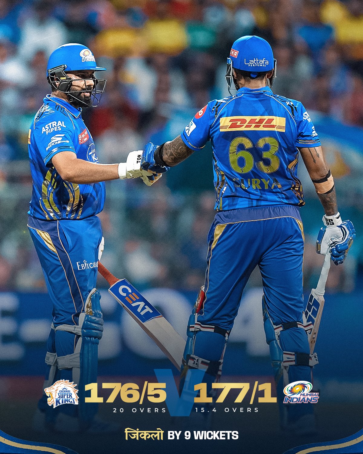 रोहित शर्मा के बल्ले से निकले रन और फिर जीत गई MI, CSK को 9 विकेट से हराया
