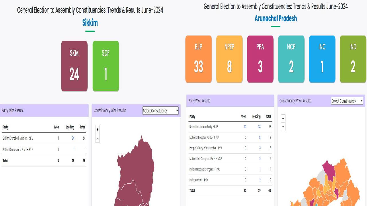 अरुणाचल प्रदेश में भाजपा को 60 में से 46 तो वहीं सिक्किम में SDF को 32 में से मिली 31 सीटें
