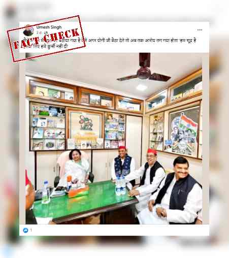 फैक्ट चेक: पश्चिम बंगाल में यूपी के पूर्व सीएम अखिलेश यादव स्टूल में नहीं बल्कि सबकी तरह कुर्सी पर ही बैठे, भ्रामक दावे के साथ वायरल हुई तस्वीर