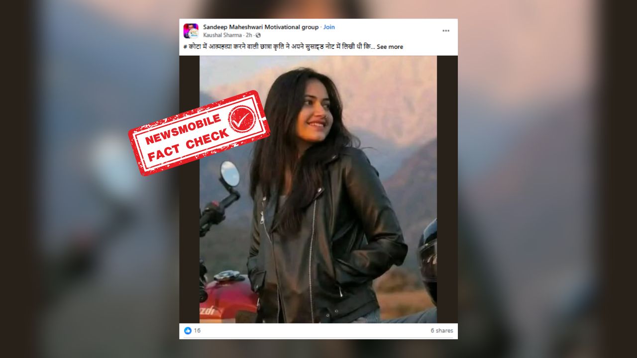 फैक्ट चेक: इस युवती ने कोटा में नहीं की आत्महत्या, भ्रामक दावे के साथ वायरल हुई युवती की तस्वीर