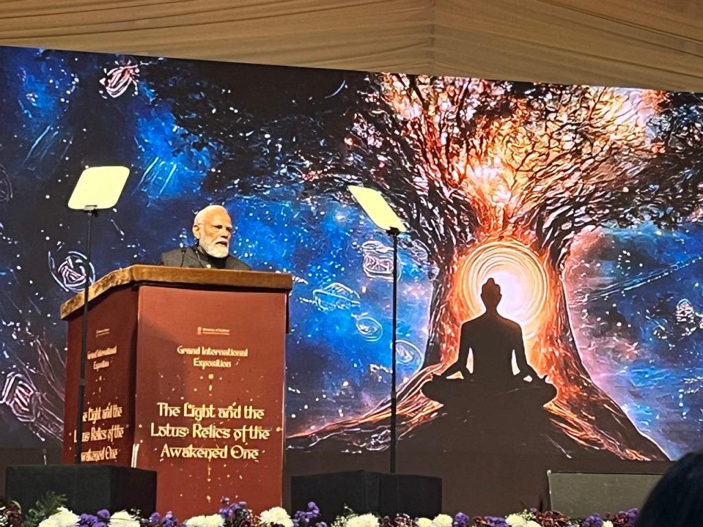 प्रधानमंत्री नरेंद्र मोदी ने शनिवार को नई दिल्ली के राय पिथौरा सांस्कृतिक परिसर में भगवान बुद्ध से जुड़े पवित्र पिपरहवा अवशेषों की भव्य अंतरराष्ट्रीय प्रदर्शनी ‘द लाइट एंड द लोटस: रेलिक्स ऑफ द अवेकन्ड वन’ का उद्घाटन किया। यह प्रदर्शनी 127 साल बाद भारत लौटे पिपरहवा के रत्न अवशेषों के पुनर्मिलन का ऐतिहासिक अवसर है।