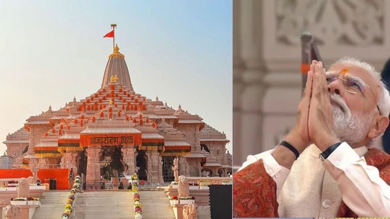 अयोध्या में ऐतिहासिक क्षण आ गया है. श्रीराम जन्मभूमि मंदिर के शिखर पर धर्म ध्वजा फहरा दी गई है. प्रधानमंत्री नरेंद्र मोदी ने इस पवित्र पल में हाथ जोड़कर भगवान श्रीराम को नमन किया. वैदिक मंत्रोच्चार के बीच यह ध्वजारोहण अभिजीत मुहूर्त में संपन्न हुआ, जिससे रामनगरी उत्सवमय माहौल में डूब गई.