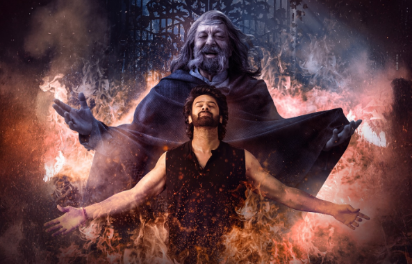 फिल्म के ट्रेलर के एलान के साथ ही एक पोस्टर भी जारी किया गया है, जो दर्शकों का ध्यान खींच रहा है। पोस्टर में बॉलीवुड अभिनेता संजय दत्त बड़े बाल और मूंछों के साथ शॉल ओढ़े हुए हंसते नजर आ रहे हैं। पोस्टर की ब्लैक एंड व्हाइट थीम यह संकेत देती है कि संजय दत्त फिल्म में भूत की भूमिका में हैं। वहीं प्रभास को बांहें फैलाए खड़ा देखा जा सकता है। पोस्टर में पीछे भूतिया महल और चारों ओर आग की झलक भी दिखाई दे रही है।
