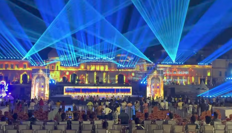 #WATCH | Uttar Pradesh: A Ram Leela is being performed at Ram ki Paidi, located on the banks of the River Saryu in Ayodhya, accompanied by a laser and light show.